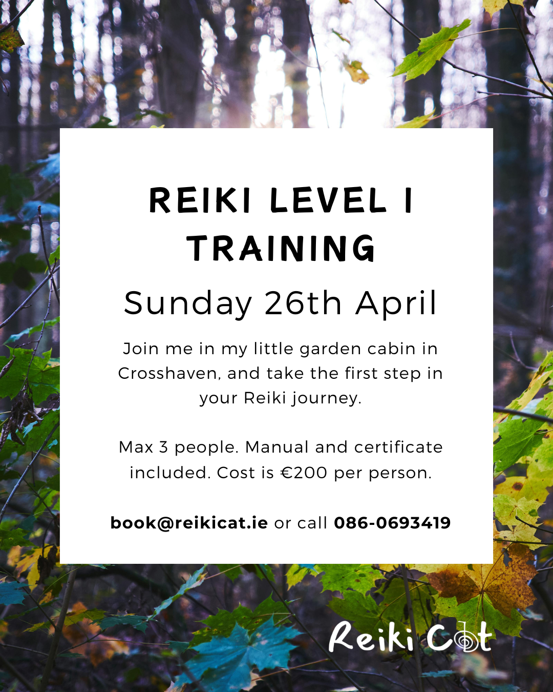 I’m running an Usui Reiki Level 1 training day on Sunday 26th April in my little garden cabin in Crosshaven.