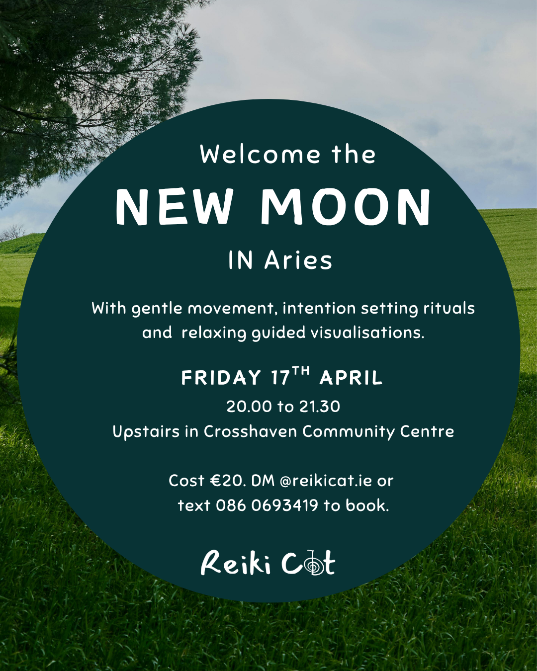 Join me in welcoming the New Moon in Aries on Friday 17th April at 8pm, upstairs in Crosshaven Community Centre.